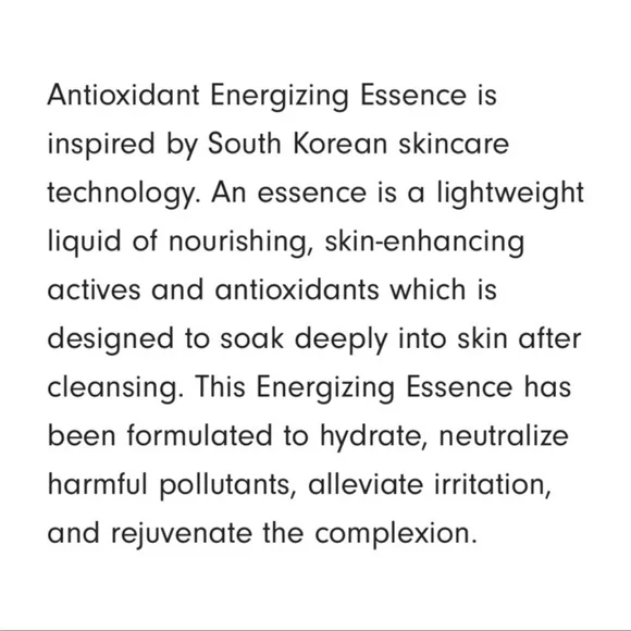 111Skin is in my top 3 favorite skincare. Brand new in box. I also send a free gift with your purchase. Will ship same day if possible. With discounted shipping The Energising Essence delivers fast-acting antioxidant properties, whilst prepping and priming the skin for better absorption of your 111SKIN routine.The Antioxidant Energising Essence is a lightweight, water-like product that enriches the skin with NAC Y²™ and a blend of soothing botanical extracts. Use directly after cleansing as a skincare primer and follow with your regular 111SKIN routine. The Essence will provide immediate hydration, soothing and revitalisation for refreshed and reinvigorated skin.100mlALOE VERA IS THE BASIC ESSENTIALTHE POWER OF ESSENCES BENEFITSALOE VERA: A botanical extract that calms, soothes and conditions the skin with anti-inflammatory properties.COPPER CHLOROPHYLL: A synthetic chlorophyll made up of a mixture of sodium- copper salts, which helps to promote skin repair and reduce discolouration.GIANT KELP: A botanical seaweed extract that is rich in minerals, iodine and antioxidants to heal, nourish and reduce irritation.