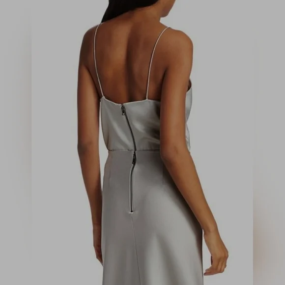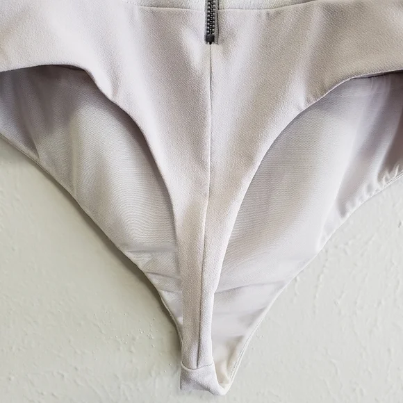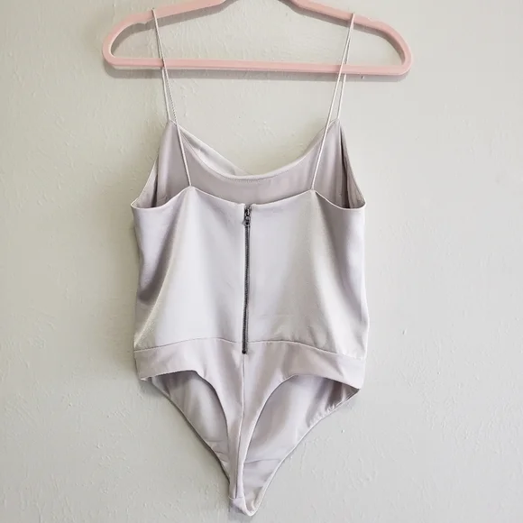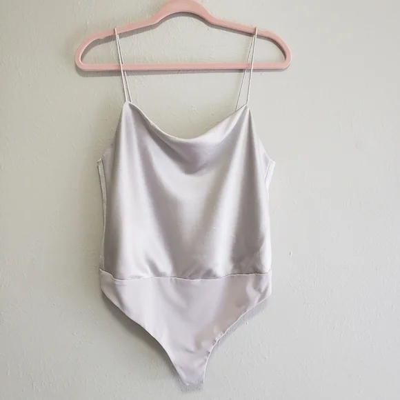 An elevated take on a sporty staple, this bodysuit is crafted of glossy satin and is finished with an elegantly draped neckline. Draped squareneck Spaghetti straps Back zip Lined Triacetate/polyester/elastane Dry clean Imported of Japanese fabric in great conditionCowl neckline. Spaghetti straps. Exposed back zipper. Thong back.