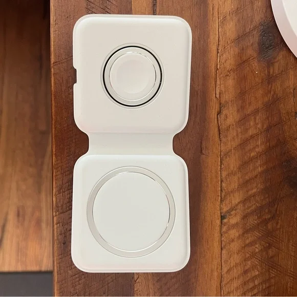 The MagSafe Duo charger conveniently charges your compatible iPhone, Apple Watch, wireless charging case for AirPods, and other Qi certified devices. Just place your devices on the charger, and a steady, efficient charge begins on contact. The charger folds together neatly, so you can easily take it with you wherever you go. Charges two devices simultaneouslyWirelessly charge your iPhone and Apple Watch at the same time.Foldable designThe charger folds together neatly, so you can easily take it with you wherever you go.Compatible with select iPhone modelsIncluding iPhone 14 Pro, iPhone 14 Pro Max, iPhone 14, iPhone 14 Plus, iPhone 13 Pro, iPhone 13 Pro Max, iPhone 13 mini, iPhone 13, iPhone SE (3rd generation), iPhone 12 Pro, iPhone 12 Pro Max, iPhone 12 mini, iPhone 12, iPhone 11 Pro, iPhone 11 Pro Max, iPhone 11iPhone SE (2nd generation), iPhone XS, iPhone XS Max, iPhone XR, iPhone X, iPhone 8, iPhone 8 PlusCompatible with Apple Watch and AirPodsIncluding Apple Watch Series 8, Apple Watch SE, Apple Watch Series 7, Apple Watch Series 6, Apple Watch Series 5, Apple Watch Series 4, Apple Watch Series 3, Apple Watch Series 2, Apple Watch Series 1, Apple Watch 1st generationAirPods Pro (2nd generation), AirPods Pro (1st generation), AirPods (3rd generation) with MagSafe Charging Case, AirPods (3rd generation) with Lightning Charging Case, AirPods with Wireless Charging Case (2nd generation), Wireless Charging Case for AirPods***No cord included***