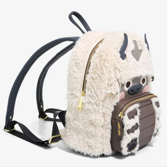 PRICE IS FIRM.Please do not make any offers unless bundled with other items with a reasonable offer. Avatar: The Last Airbender Appa Figural Fur Mini Backpack - BoxLunch ExclusiveAppa carried the Gaang on their adventure around the Four Nations, and now he can carry your essentials! The flying bison from Avatar: The Last Airbender has been reimagined as this furry mini backpack. The die-cut appliqués are modeled after Appa's horns, feet, arrow, nose, and tail making for an adorable version of Aang's trusty sidekick. This roomy bag will have enough space to hold your bending scrolls, space rocks, Fire Nation disguises, and more in its front zipper compartment, main zipper compartment, and interior zipper pocket. Also features gold-toned hardware and adjustable straps.Approx: 9" W x 11" H (15 1/2" H with tail) x 5" D