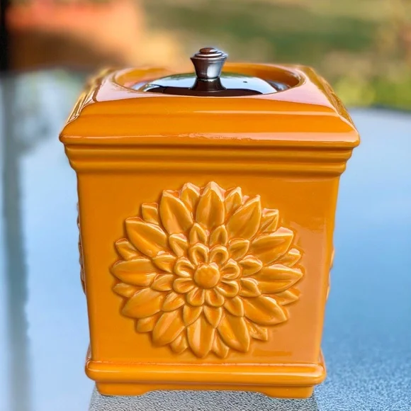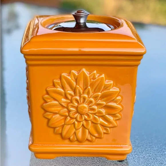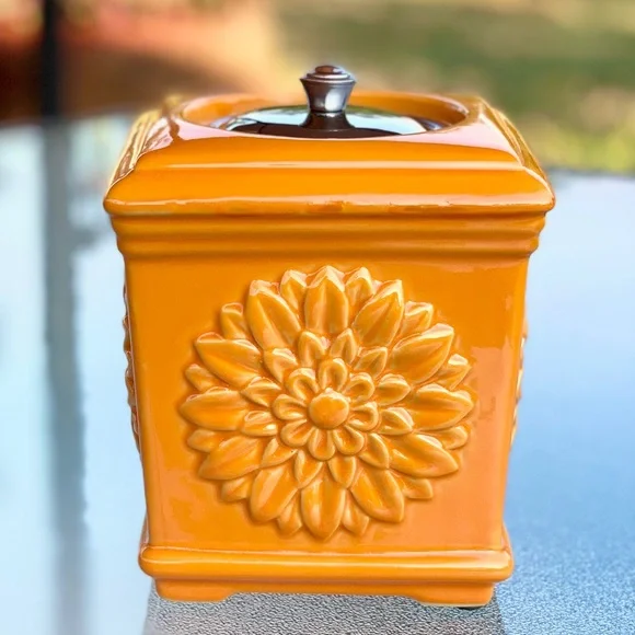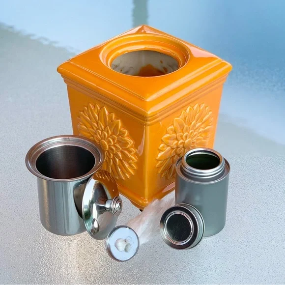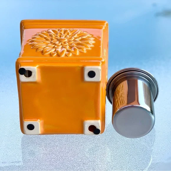 New, Without Box Ceramic Orange Sunflower Table Top Torch Outdoor Lamp by Wind Flame==> Fuel NOT Included <===Product Details:- Single 3D Sunflower on Each Side- Solid Orange with Glazed FinishOutside- Square, Slightly Tapered Shape- Fuel Vessel Assembly, Wick andLids Included- Four Table Protector Pads onUndersideDisclosures:- 2 table protector pads askew.- Fuel NOT included.Approximate Measurements and Weight:- 5-1/2” Square- 6-1/2” High to Top of Handle- 2 Lb., 2 Oz.Thank you for visiting.