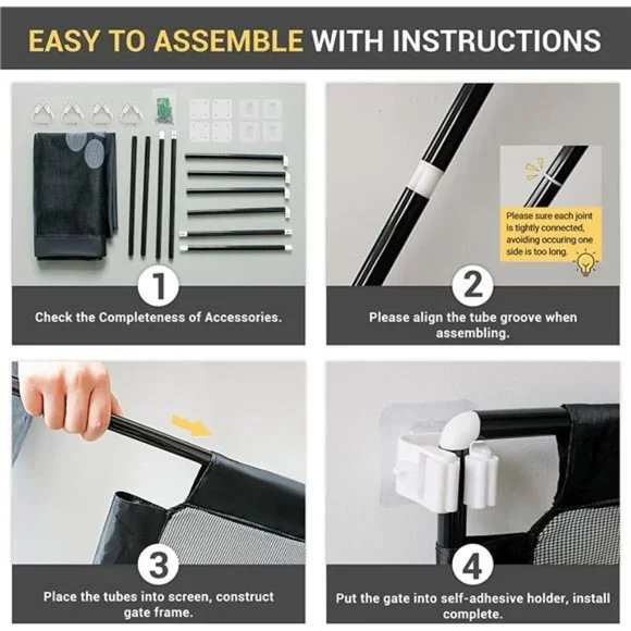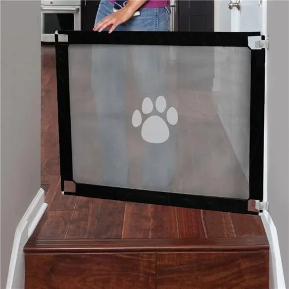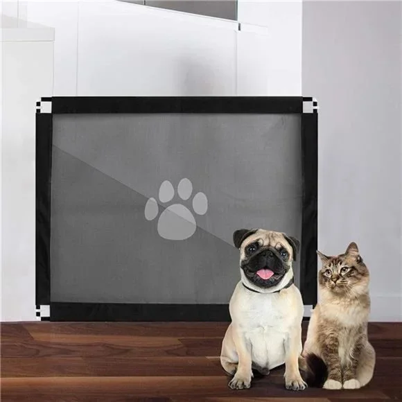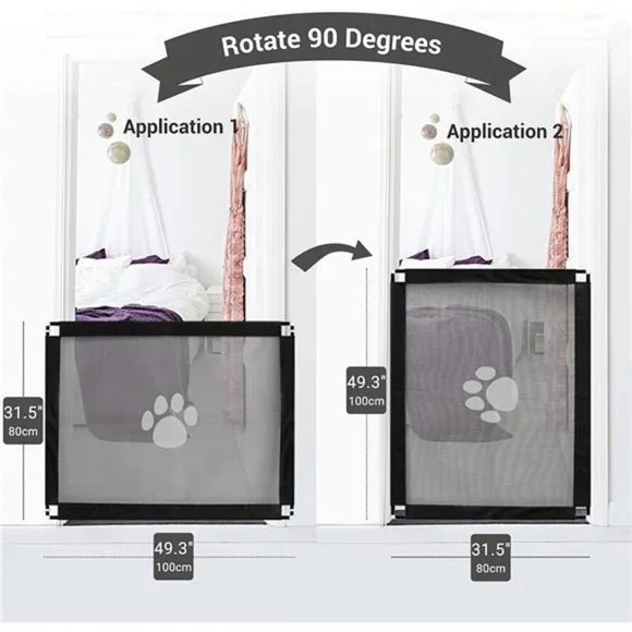 -Namsan safty pet gate made of quality nylon mesh and metal tube frame, strong and durable.-The mesh dog gate can be intalled to the Doorways, Hallways, Stairways at home to stop your dog, cat or other pet enter into potential dangerous places and anywhere you don’t want it go.-Splicing tubes with jointed fittings, and install them into gate around together to get 39.3" x 31.5" dog screen gate, you need to insatall it horizontally and vertically base on the size of your doorway.-Drill 4 holes on the wall according to the size of the pet barriers, put the wall-expansion rubber plugs into the holes, fix the pipe clips with screws.-Open all clips and put this magic gate into them, you can swung it to open and closure, only need to unlock one side 2 pipe clips to push it when you pass.