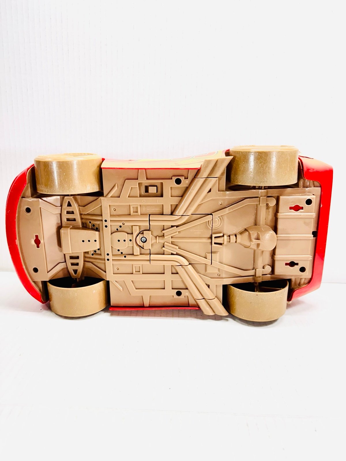 The product is a 14-inch Disney Pixar Cars Dirt Track Lightning McQueen action figure that talks and has moving eyes. Manufactured in 2016, this rare collectible features the character Lightning McQueen from the popular Cars movie franchise. Made of plastic, this original licensed reproduction is designed with attention to detail, including a red color scheme and a 1:4 scale. Perfect for fans of racing and the animated TV show Tow Mater, this Lightning McQueen figure is a must-have for anyone interested in Pixar and Disney memorabilia. Works perfectly!