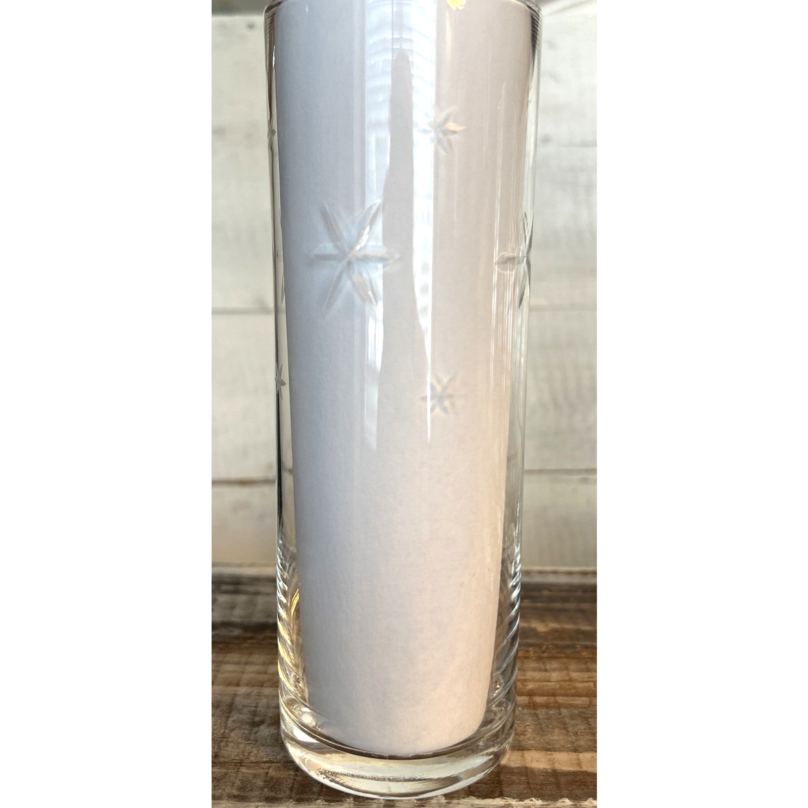 The product is a set of 6 Vintage MCM Barware Quartzex Crystal Star Dust Atomic Cooler highball glasses.