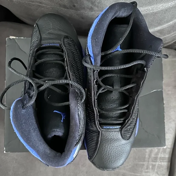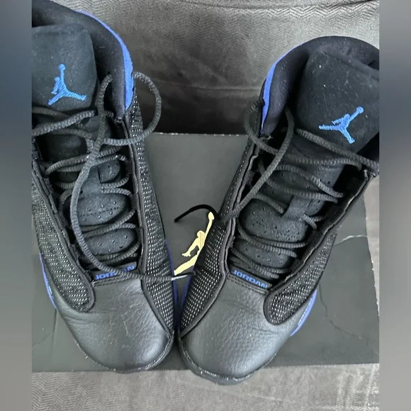 The Air Jordan 13 Black Hyper Royal is reminiscent of former NBA All-Star Quinten Richardson’s Orlando Magic Player Edition (PE) colorway. The Air Jordan 13 Black Hyper Royal is made in a familiar construction. The upper holds a mix of leather, mesh, and microfiber. The side panels sport reflective material, constructed with breathable mesh for ventilation. A holographic "23" badge on the ankle brings the sneaker to its original roots.