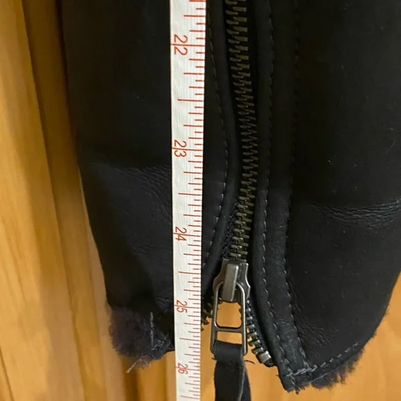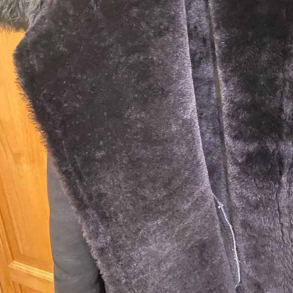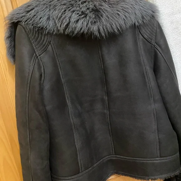 Winter jacket, size medium.Thisitem has been used one winter season, not to often , no flaws. Color dark gray , more light gray fluffy collar. Zipper on front. Made in England. Has original just bag. Jacket is 21” long. Long sleeve is 25,5 “ with zipper ( u can made shorter sleeve) . Has short natural fur inside jacket and in the sleeves . Very cozy, worm, soft ! ( I decided to sell because it is getting tiny)No smell smoking or wipes