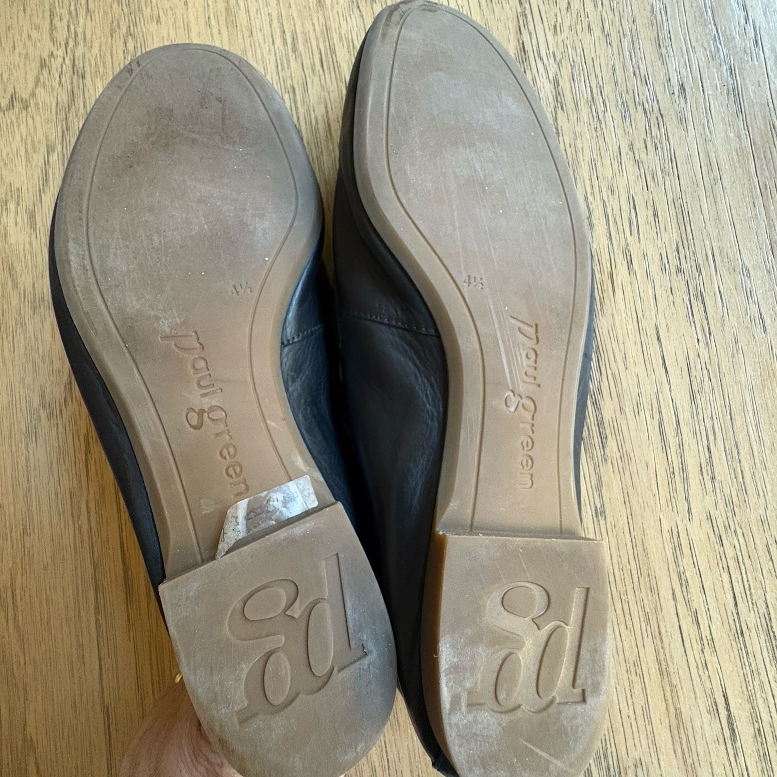 High-end designer buttery soft black leather loafers by Paul Green. Amazing quality. Made in Austria. Low heel. These slip-on loafers feature an almond toe shape and a comfortable rubber outsole, making them suitable for casual and business occasions. Crafted in Austria.