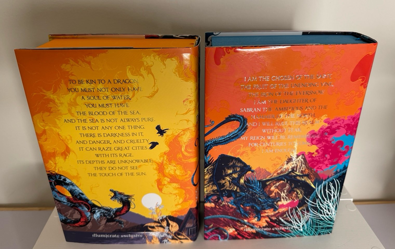 Brand new, never read! Illumicrate Exclusive! Includes the Priory of the Orange Tree and A Day of Fallen Night. Great condition, may have really minor shelf wear on dust jacket edges.