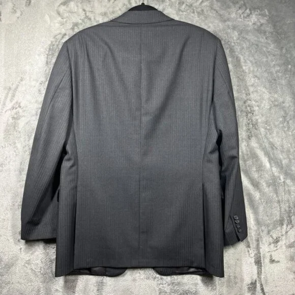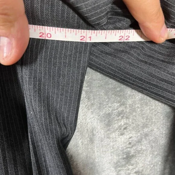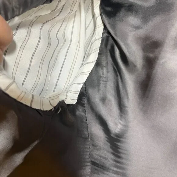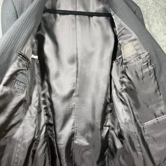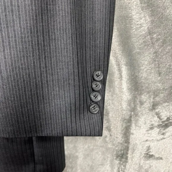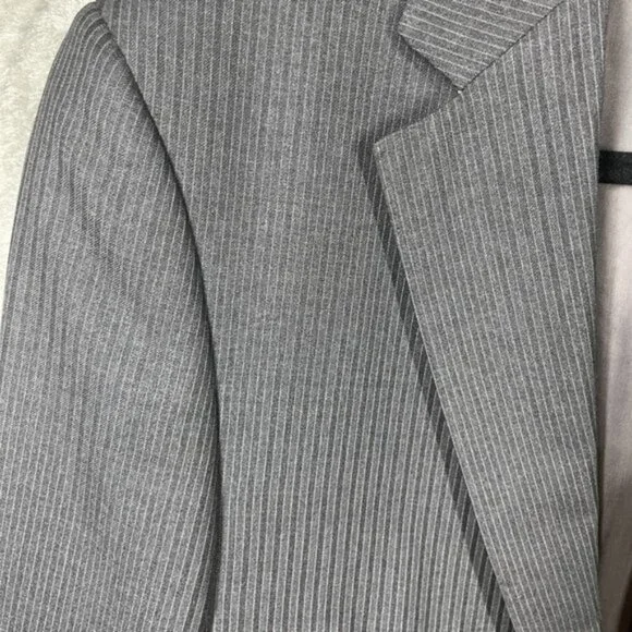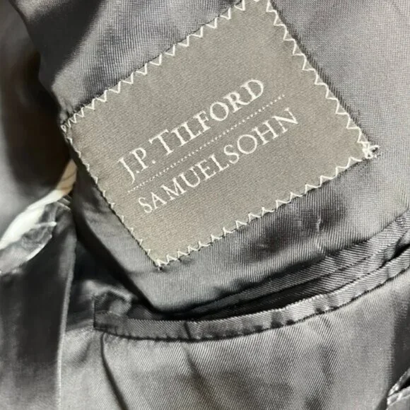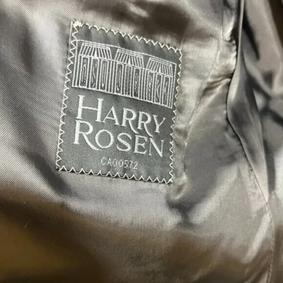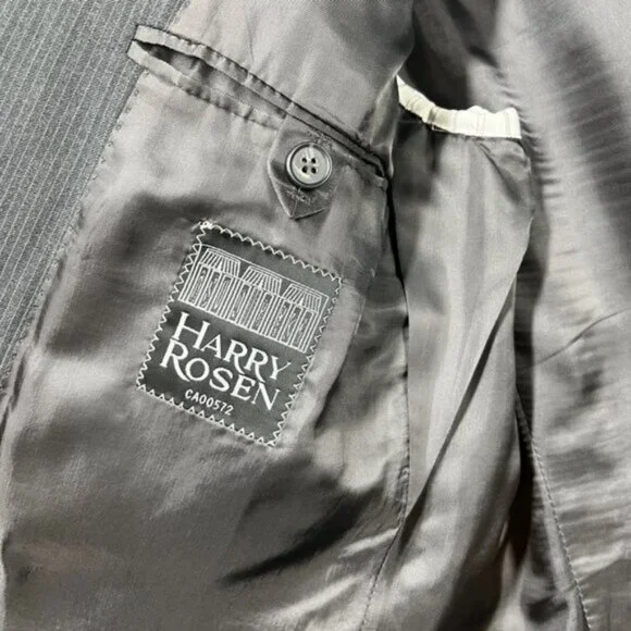 In excellent condition. Made in Canada100% Wool- woven in ItalyInterior of the sleeve is stitched as shown in the picture. Otherwise it's a clean blazer inside/out.From the luxury Harry Rosen BoutiqueSamuelsohn luxury brandQuality material woven in ItalySize 40RGray colorPlease see pics for approx measurements, and let me know if any questions. Thank you,