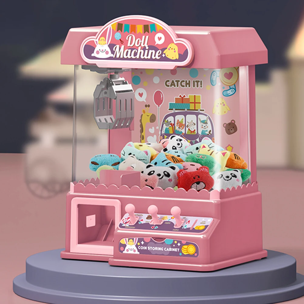 Doll Claw Machine Kids Coin Operated Play Game Clip Doll Toys with 10 Dolls 10 Capsule Sounds and Music Gifts for Girls and Boys
