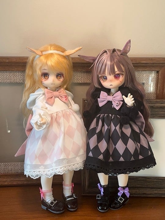 Her head is Tinyfox 01s (P4) and body is Fenjiexian (P5), normal pink skin. Her hair is highlighted and styled.